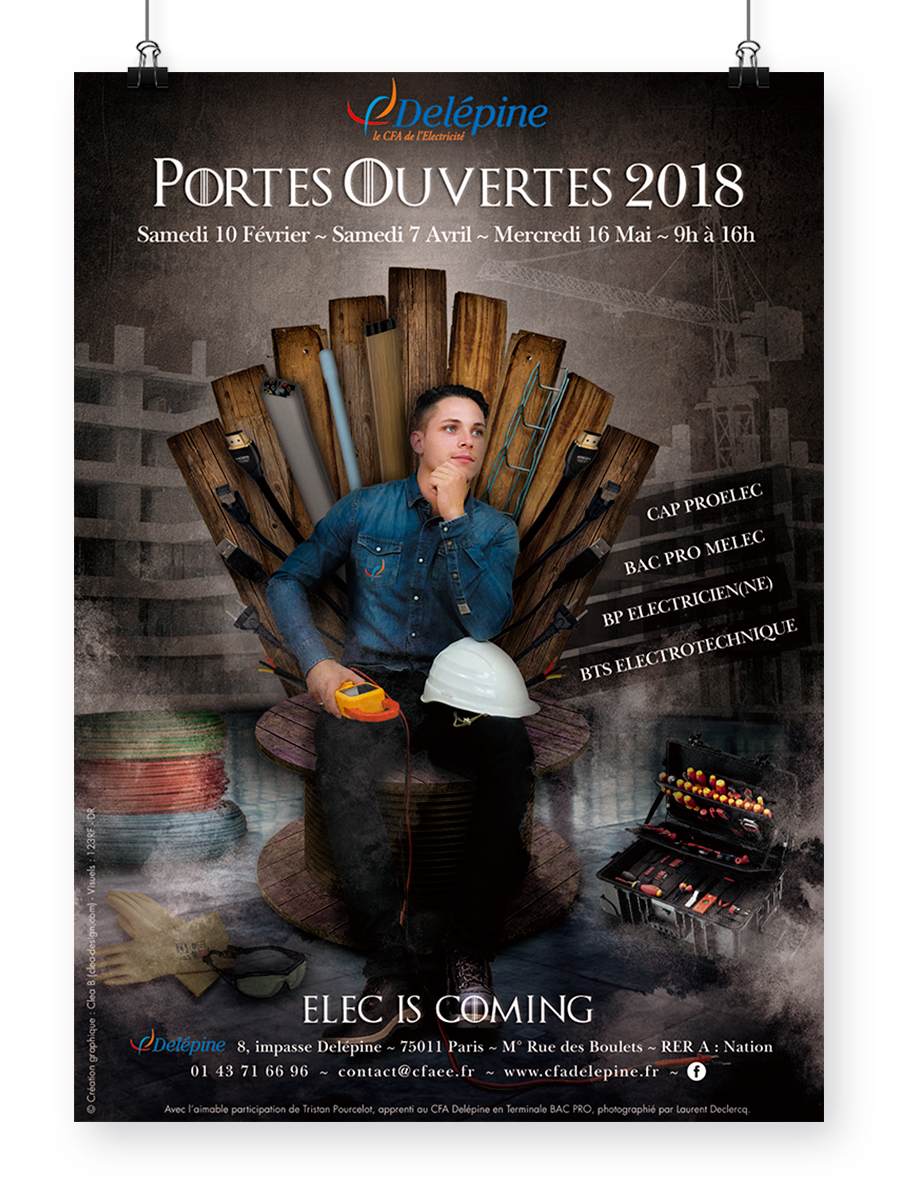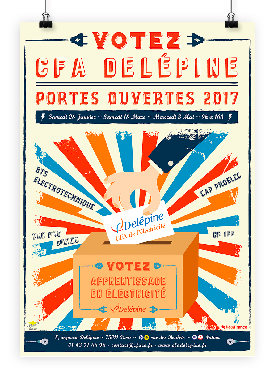 Création graphique d’affiches pour les Journées Portes Ouvertes du CFA Delépine, centre d’apprentissage dédié aux métiers de l’électricité